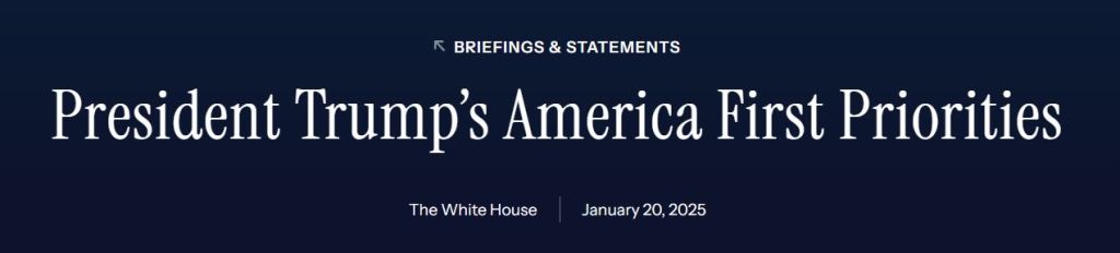 The header to President Trump’s priorities on the White House website. Front and center is the desire for American energy dominance. whitehouse.gov